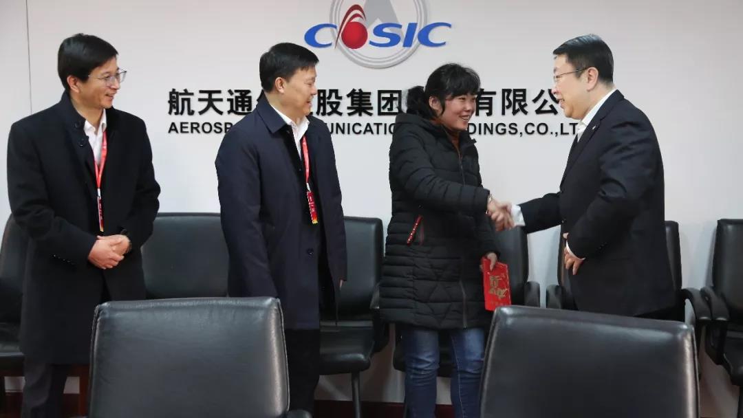 1月24日,集團公司黨組成員、副總經理陳國瑛走訪慰問航天通信困難職工,為困難職工送去了組織的關懷、新年的祝福和慰問金。航天通信黨委書記、董事長余德海,總裁、黨委副書記崔維兵陪同。