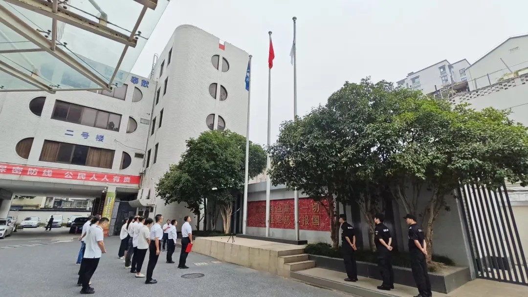 9月30日,航天通信所屬單位在杭州、成都、沈陽、長沙、綿陽、鎮江等地同步舉行升旗儀式。