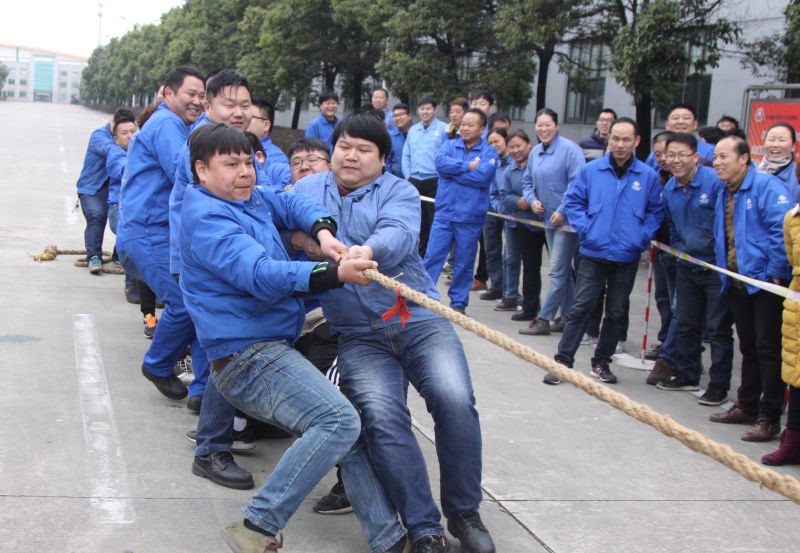 哨聲響起,比賽開始!參賽隊員們一齊高呼著“一二,一二”, 雙手緊握長繩,憋足了勁拼命往后拉,公司領導在隊伍旁助陣加油,未參賽的員工自發組成啦啦隊為比賽隊員吶喊加油。