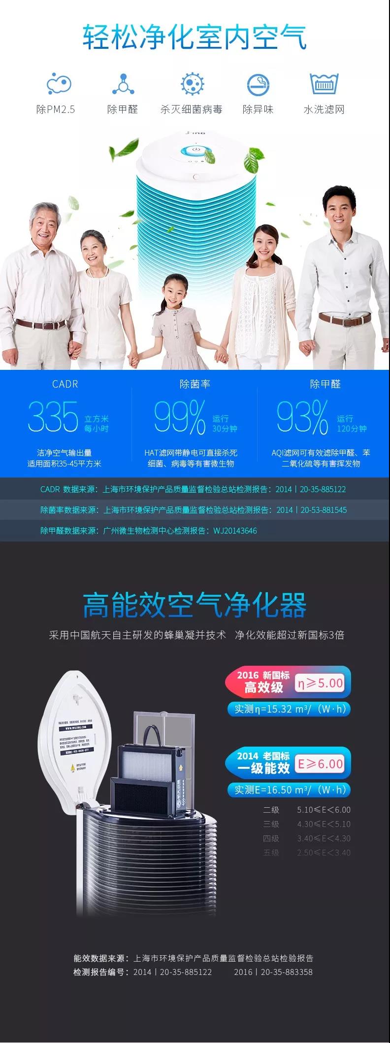 航天迅馳空氣凈化器為無耗材空氣凈化器,凈化效能超2016新國標(biāo)3倍;CARD值(每小時凈化空氣量)335立方米/每小時(大);運(yùn)用中國航天自主研發(fā) HAT·蜂巢凝并技術(shù),有效凈化空氣中PM10、PM2.5、PM0.1顆粒物,30分鐘凈化率達(dá)99.9% 可殺滅空氣中的細(xì)菌和病毒,30分鐘殺菌率99%。