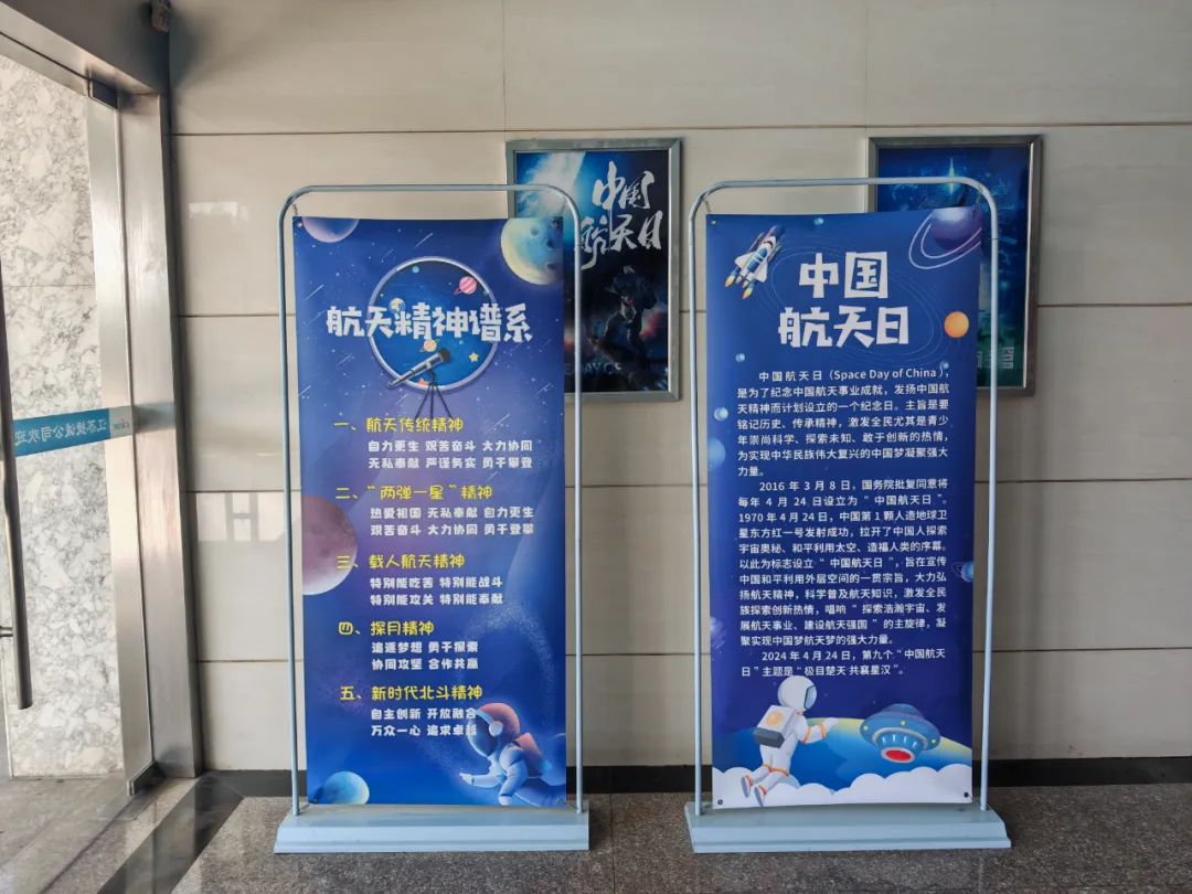 為了營造濃厚的節(jié)日氛圍,公司在行政樓大廳、研發(fā)大樓、食堂等醒目位置,張貼2024年“中國航天日”主題海報,同時通過發(fā)布電子屏,設計制作宣傳櫥窗、展板等,引導全體干部員工以中國航天發(fā)展史為教材、以航天先輩為榜樣,在航天精神的鼓舞下,立足崗位奮發(fā)作為,把航天精神轉化為推動公司轉型升級的強大動力。