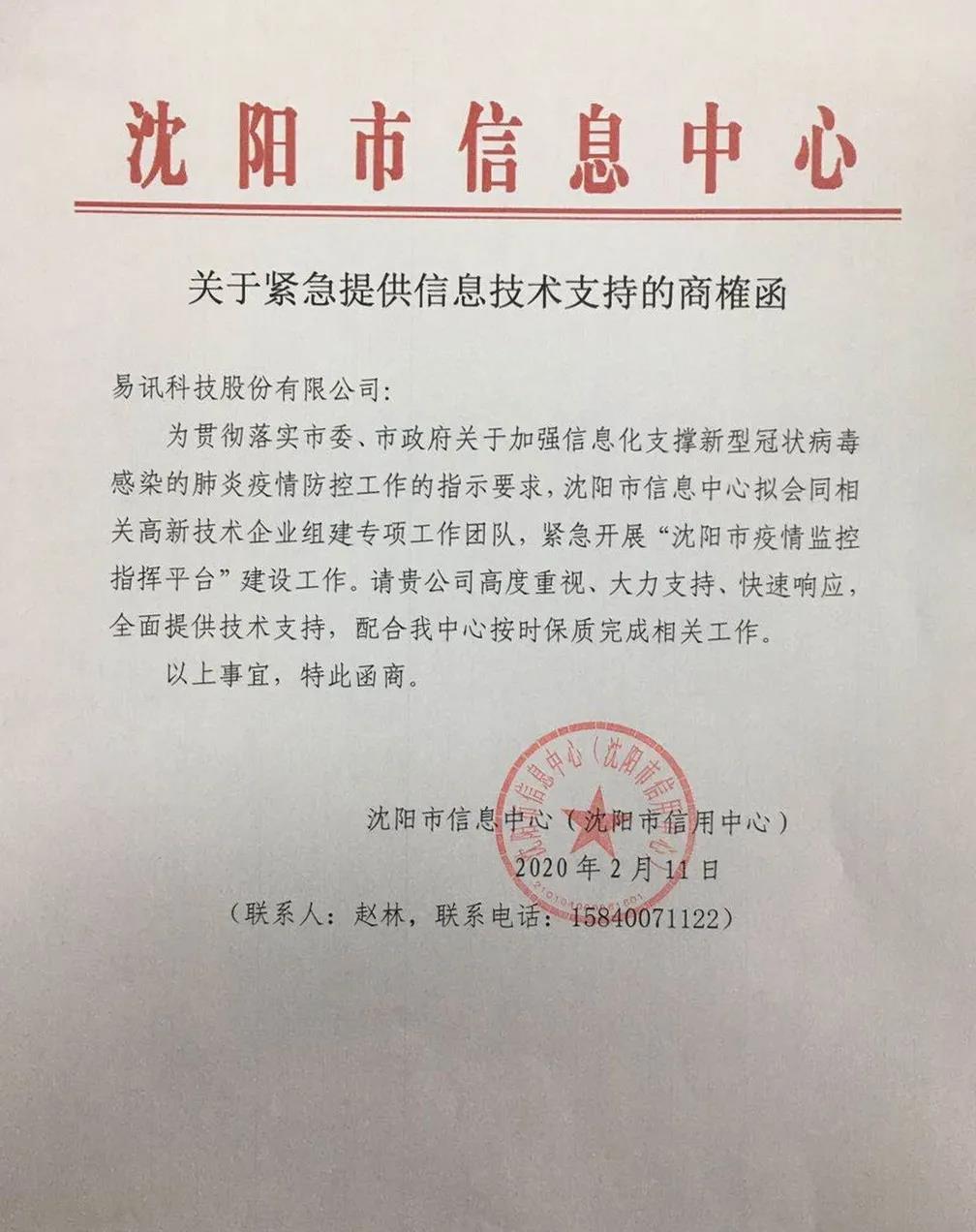 在疫情爆發(fā)初期,易訊科技黨委第一時間提出要堅決做到“隨叫隨到、隨說隨辦、決不講價錢”,并主動聯(lián)系相關(guān)的服務(wù)單位,提出服務(wù)保障方案,助力所有合作單位防控新型冠狀病毒肺炎疫情期間的信息化保障工作,截至目前,易訊科技先后參與了國家電網(wǎng)及遼寧電力、遼寧省凌源各監(jiān)獄、沈陽市民政局、沈陽市信息中心、沈河區(qū)政府等多家單位疫情期間的技術(shù)支持和維護(hù)保障工作。