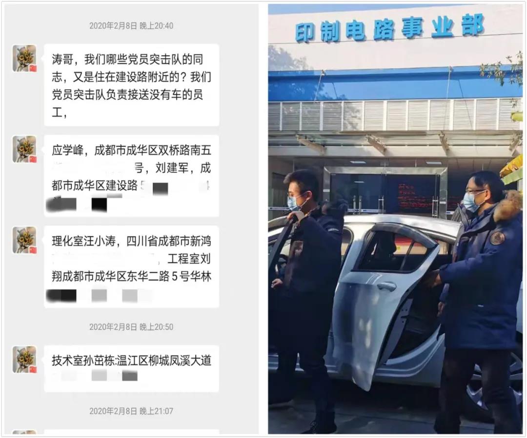 印制電路事業部黨支部共有黨員23名,疫情防控的號角一吹響,在黨支部的組織號召下,黨員們立即主動投身到疫情防控的各個崗位上,以身作則,以實際行動亮身份。疫情爆發之初,事業部兩名湖北籍員工楊映柳和熊文斌兩位同志,積極響應政府及公司號召,毅然放棄春節回家的機會,留在駐地,一面是一年到頭也無法與家人團聚的心酸,一面是對遠在家鄉的親人的擔憂。面對這個特殊的春節,黨支部對兩位員工進行了慰問關懷,為他們的顧全大局表示感謝,并送上了節日的祝福,用關愛點燃了寒冬溫暖的燈火。復工復產后,為避免乘坐公共交通工具帶來的感染風險,保證員工身體健康,黨支部組織黨員突擊隊開展接送服務,突擊隊員們每日匯總統計員工上下班信息,對出行不方便的員工統籌安排就近接送,扎實做好聯系服務群眾工作,加入“志愿車隊”的突擊隊員們在做好防疫和本職工作之余,每天多花1個多小時甚至幾個小時的時間接送同事,他們樂于奉獻、甘于付出,為大家提供了便利,也守住了安全。