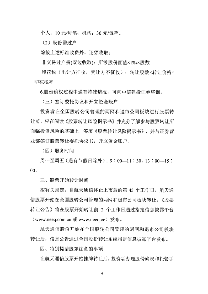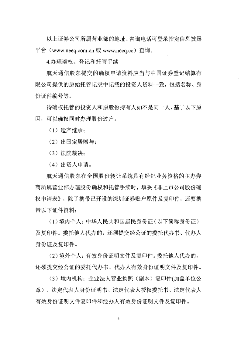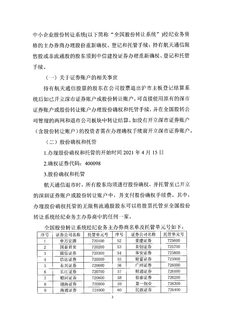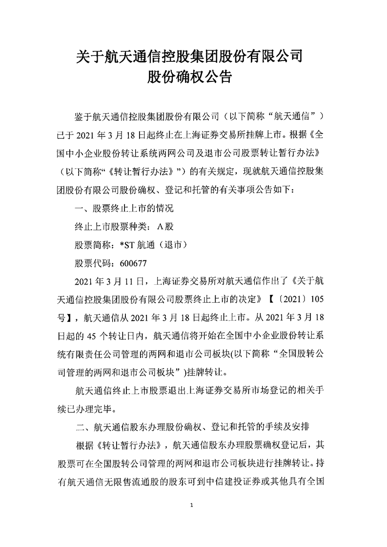 關于航天通信控股集團股份有限公司股份確權公告